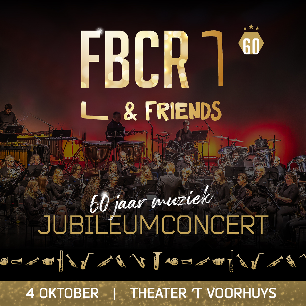 FBCR viert dit jaar haar 60-jarig jubileum. Al decennialang speelt het orkest een belangrijke rol in het culturele leven van de regio en kent de vereniging een rijke geschiedenis. Reden genoeg voor een groots feest. Op zaterdag 4 oktober 2025 staat FBCR om 20:00 uur in Theater ’t Voorhuys in Emmeloord met het jubileumconcert ‘FBCR & Friends’: een feestelijke avond vol muziek, herinneringen, verrassingen én afterparty.